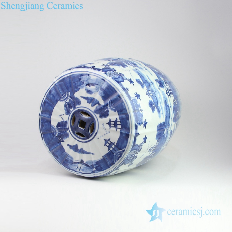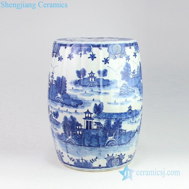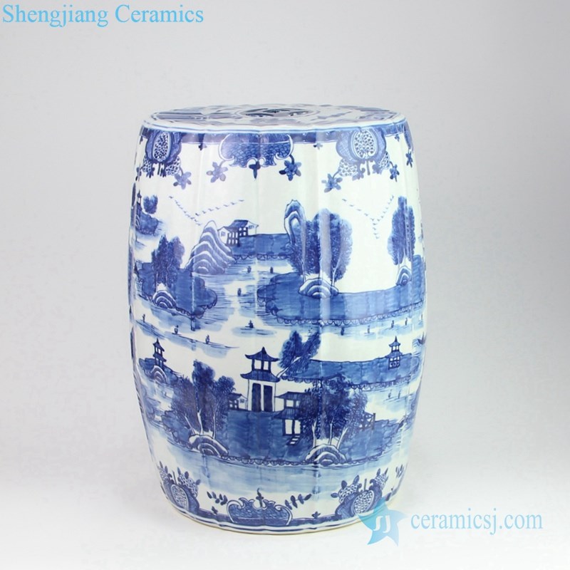 Blue and white hand drawn ancient China life pattern porcelain arris stool |