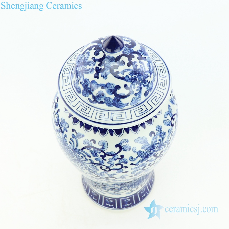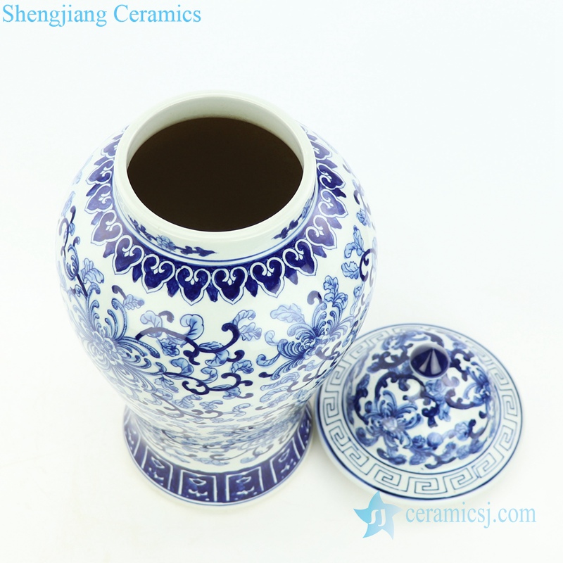 Blue and white hand paint interlock lotus branches porcelain jar |