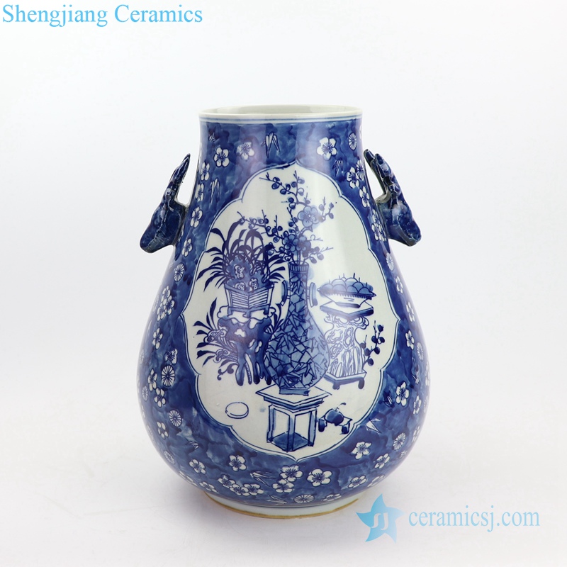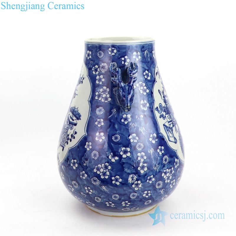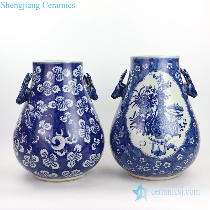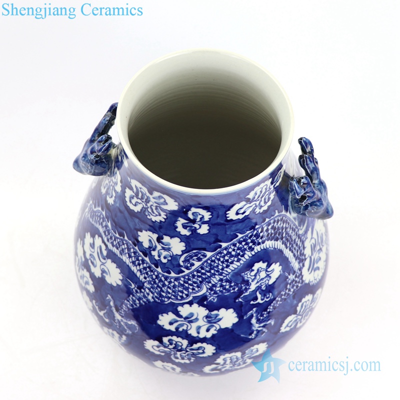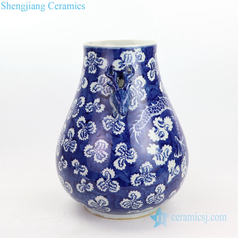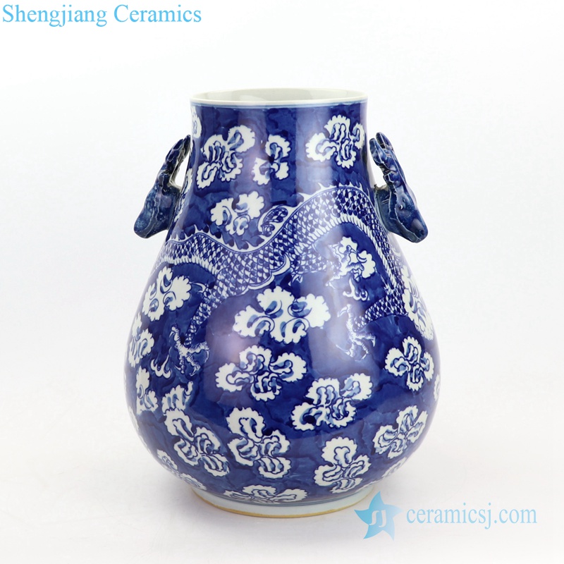 Goat handle blue background white vase dragon pattern ceramic masterpiece vase |