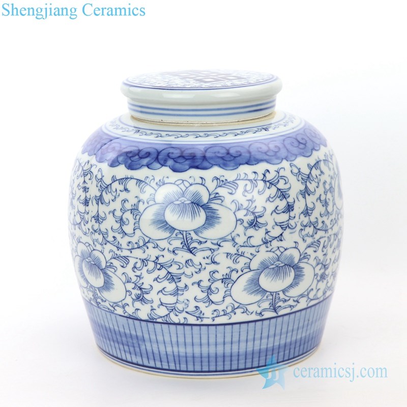 Chinese traditional ceramic with design of interlocking branches of peony tea jar |