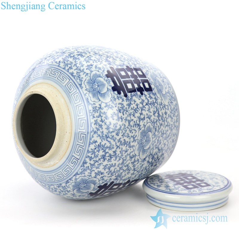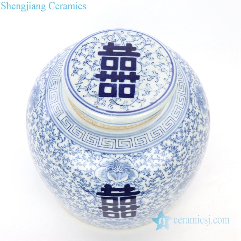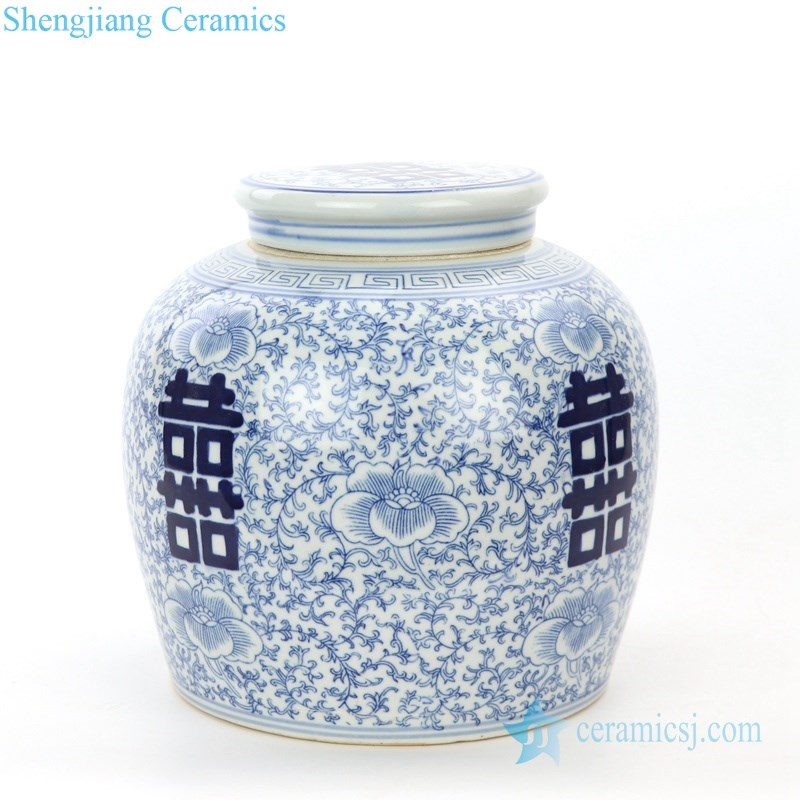 High quality double happiness ceramic with interlocking branches of peony tea jar |