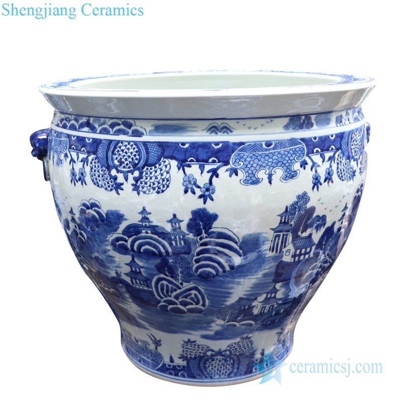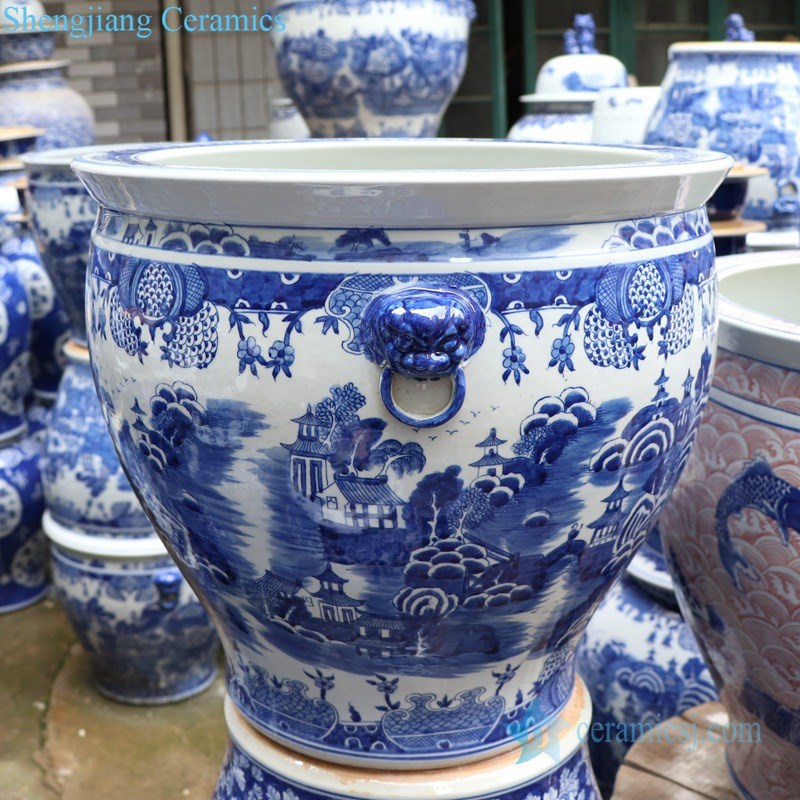 Shengjiang hand drawing ceramic with landscape design goldfish bowl |