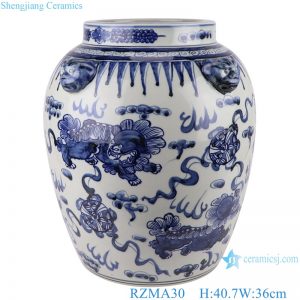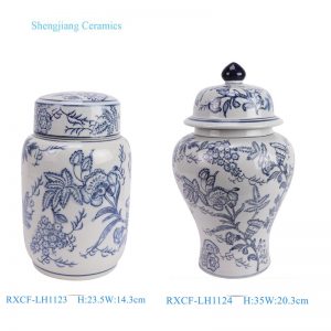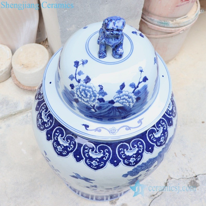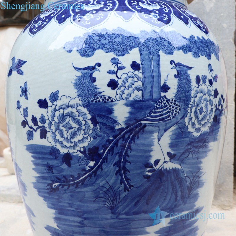 Shengjiang blue and white ceramic with phoenix and peony design potiche jar |