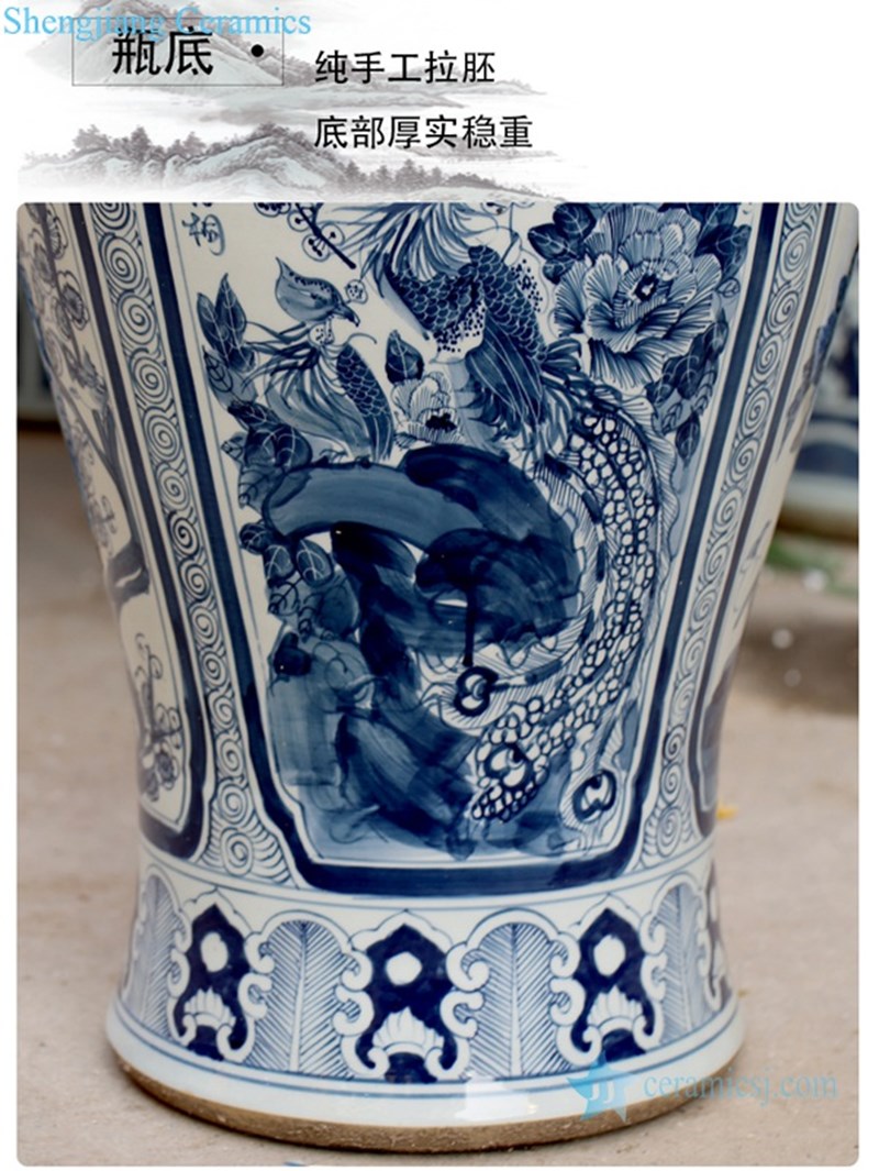 Pair of shengjiang hand painted blue and white ceramic floor ginger jar |