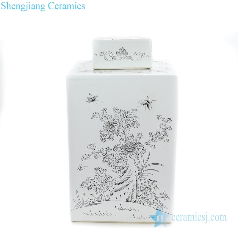 Simple style hand drawing pattern ceramic with six sides tea jar |