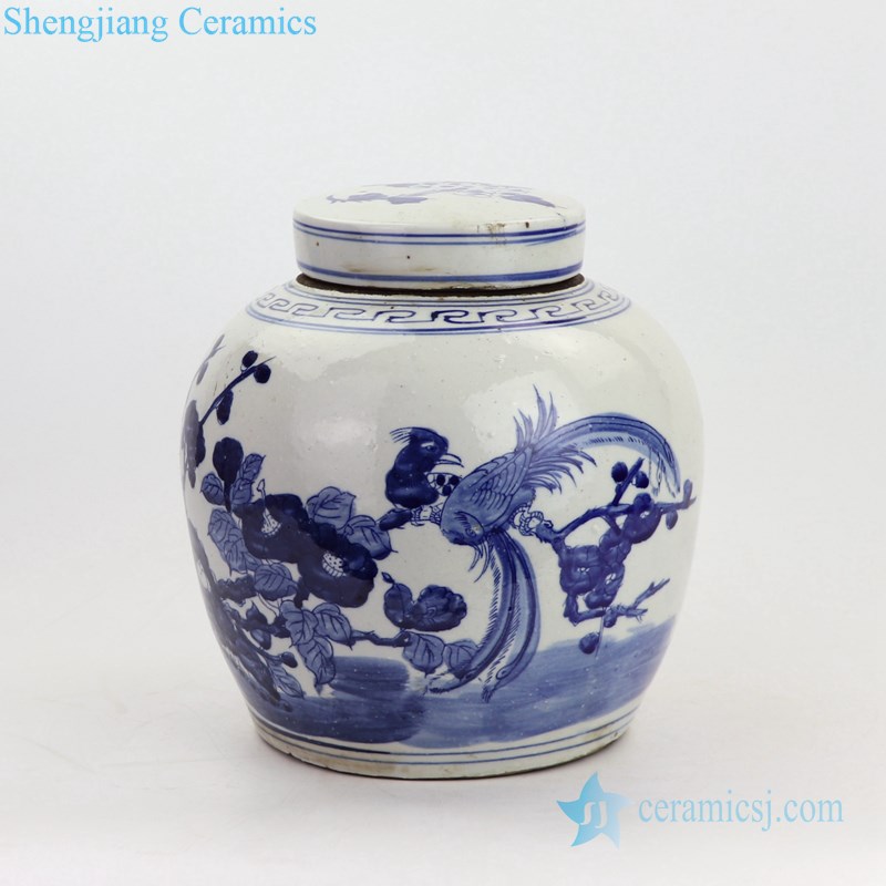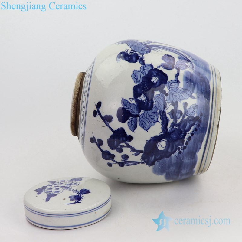 Hand craft flower and bird design ceramic tea jar |
