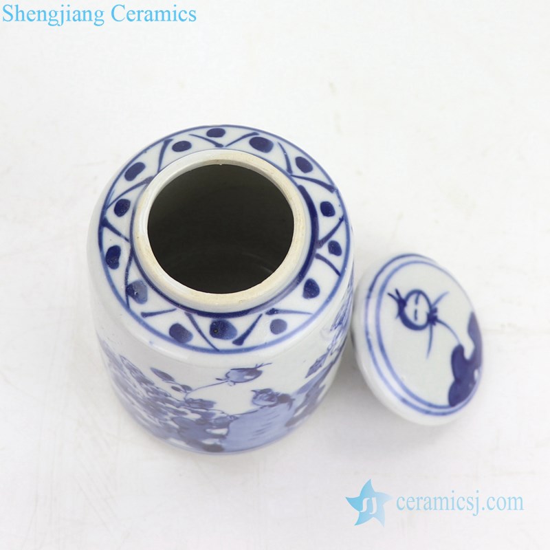 Round covered bird design blue and white porcelain jar |