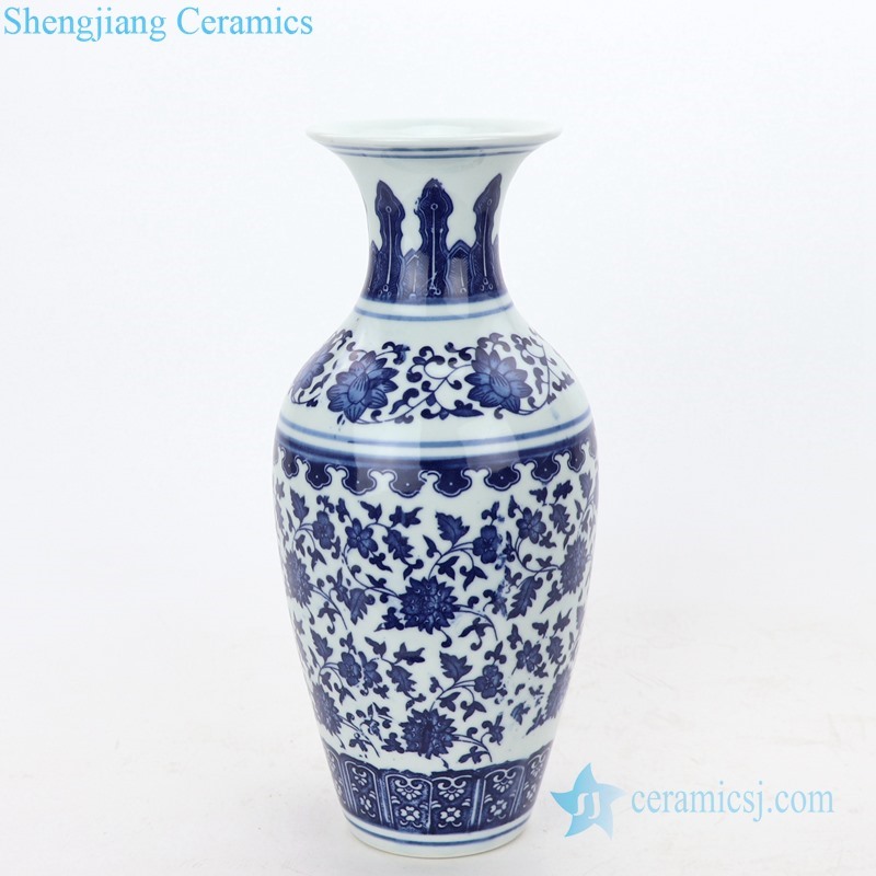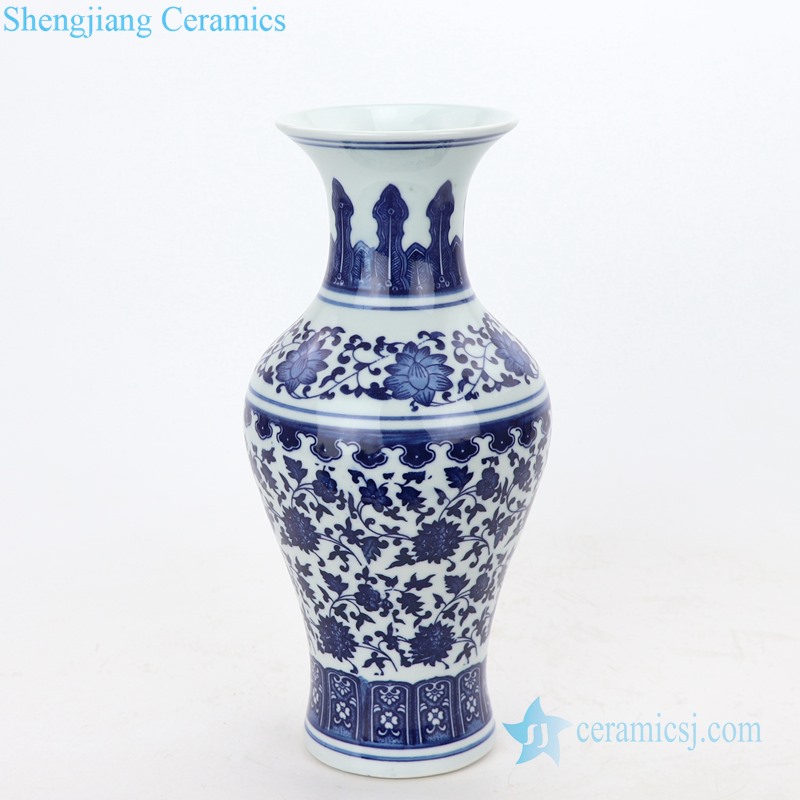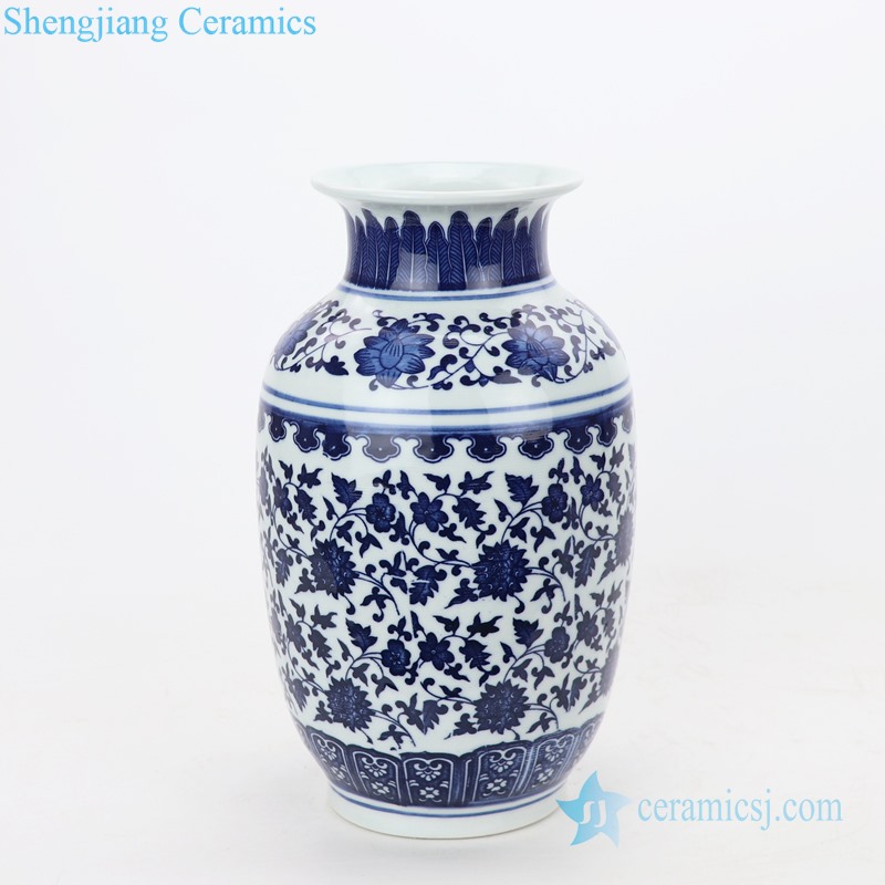 Valuable blue and white interlocking branches of lotus design ceramic vase |