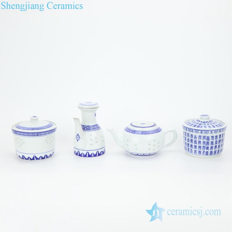 Blue and white restaurant ceramic pot for spices |