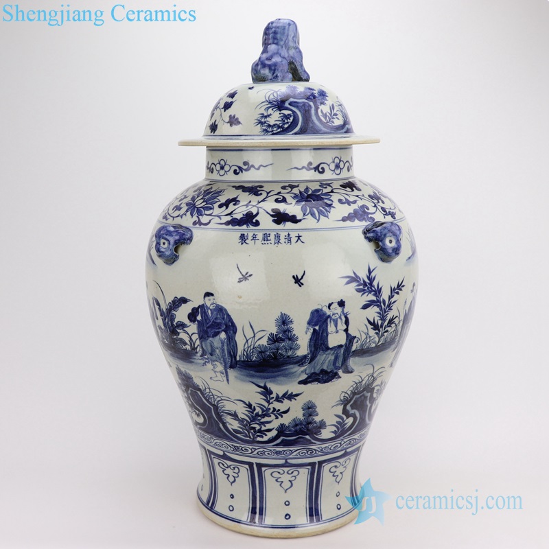 Dark blue China the 8 immortals ceramic jar with lion knob |