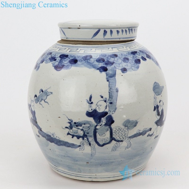 Jingdezhen China artisan hand painted old porcelain jar in blue color