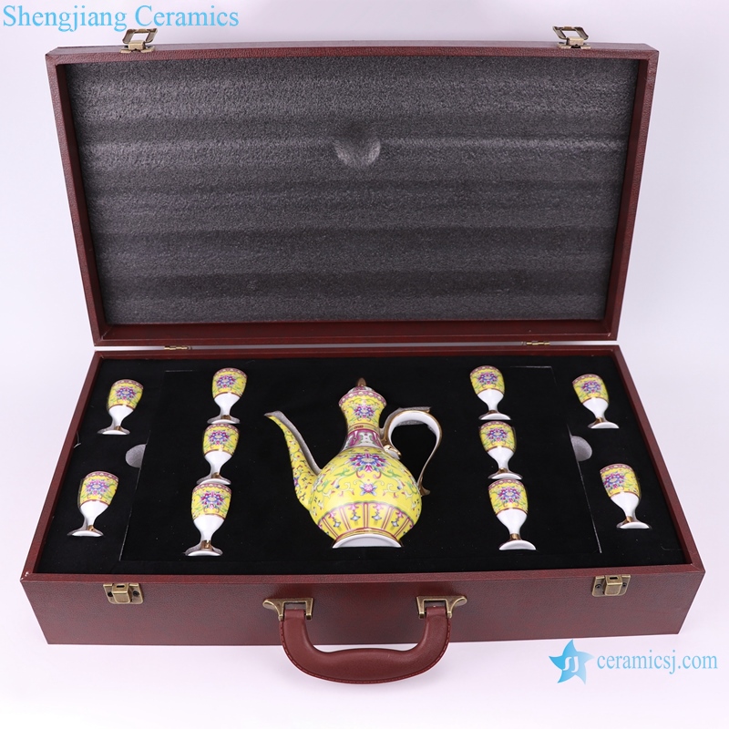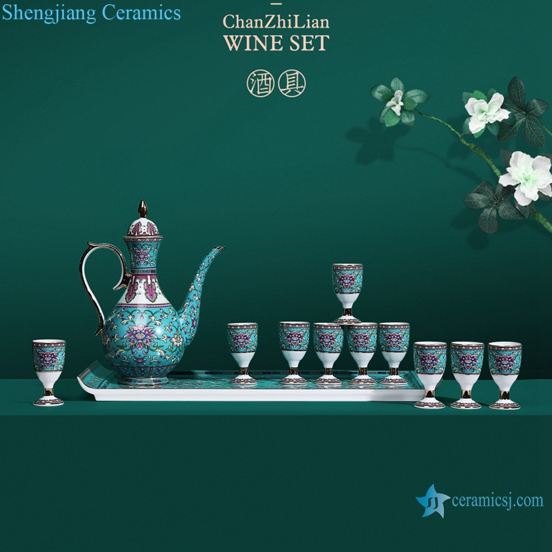 RYGJ02 Jingdezhen Cloisonne enamel medallion wine set with 14 imperial blue pieces