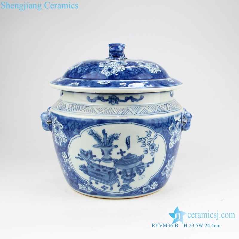 RYVM36-B Archaize hand-painted blue blue bottom open light ice plum eight treasure band lid storage tank