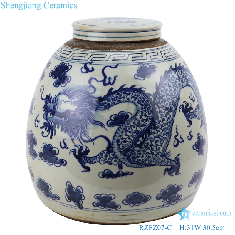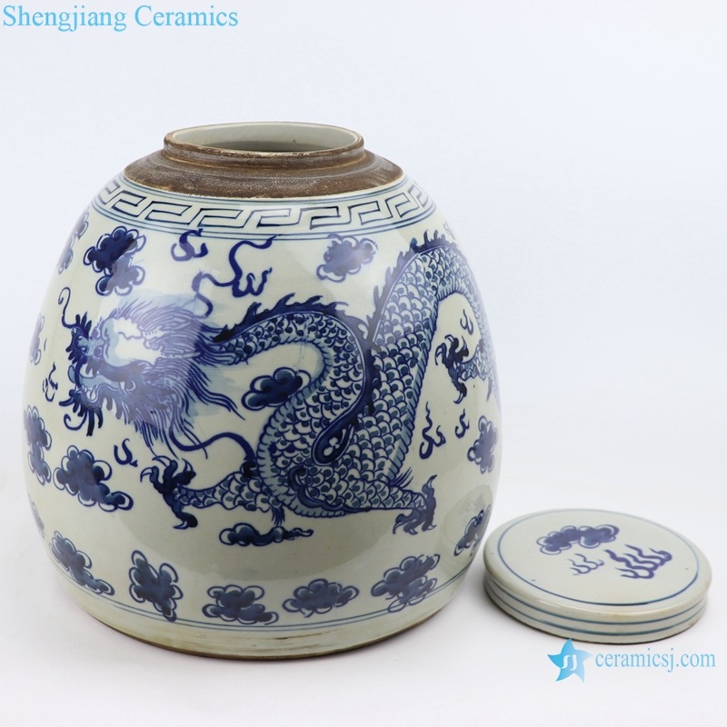 RZFZ07-BorC Archaize hand-painted blue and white flowers and birds double phoenix jar |
