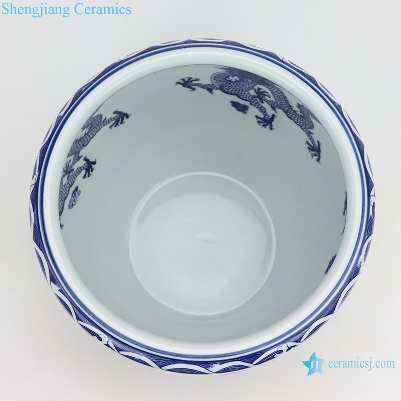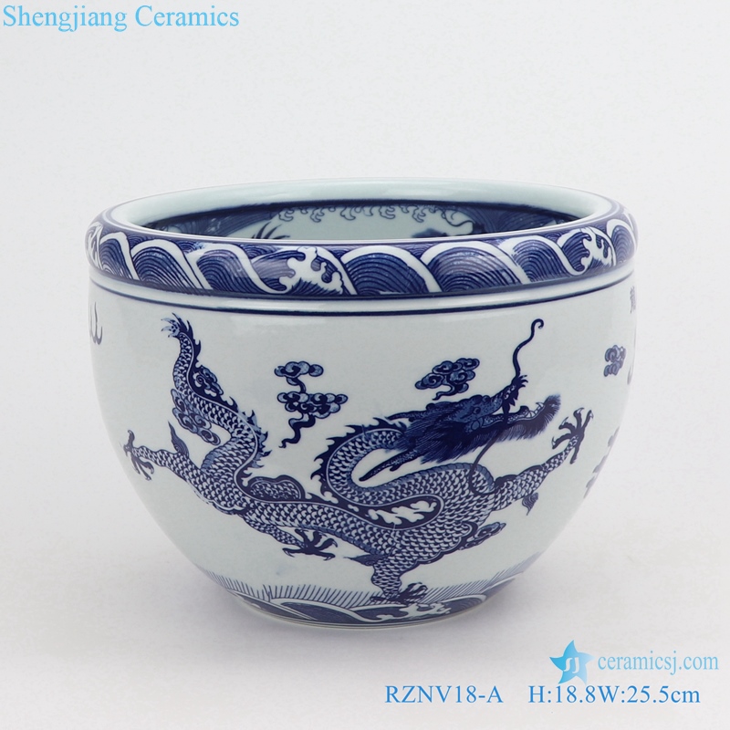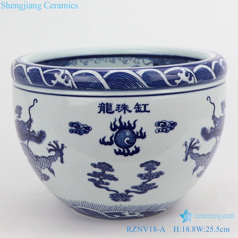 RZNV18-A Blue and white cloud dragon pattern double dragon play bead figure circular small tank dragon bead tank