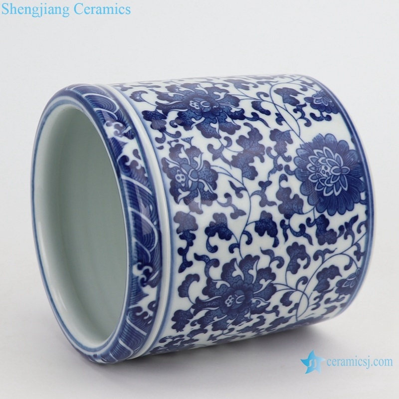 RZNV20-C Medium size daily decoration for round pen container with lotus pattern on blue and white porcelain