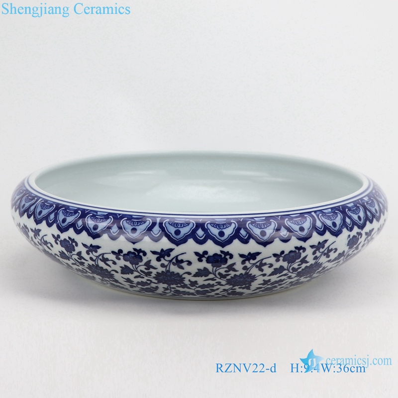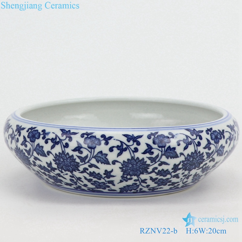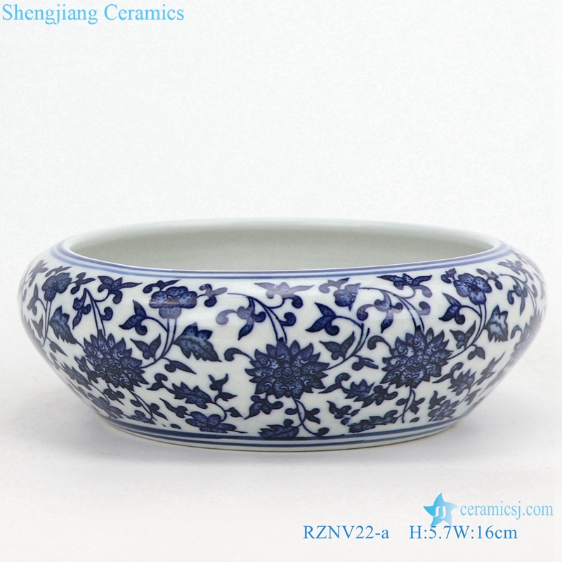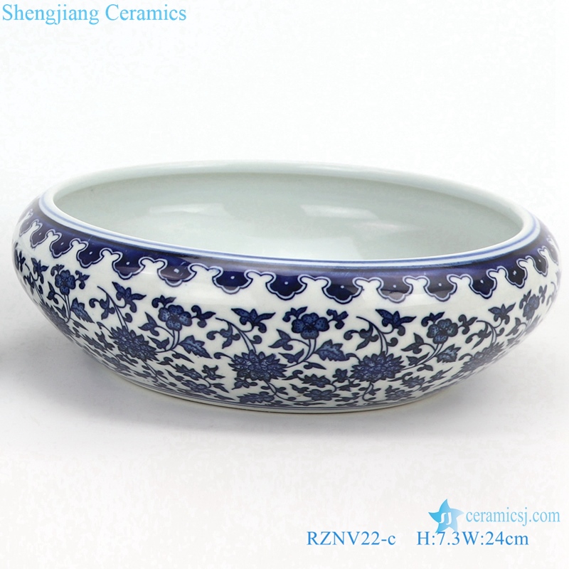 RZNV22-a-b-c-d Ceramic blue and white lotus pattern round flat stomach wash water light decoration mini size small medium large