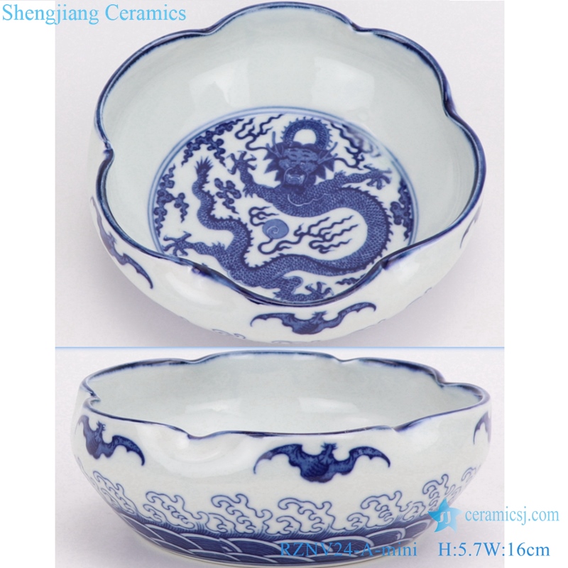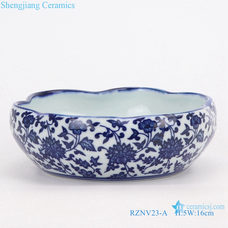RZNV23-A-B-C-D-E Blue and white porcelain bound LianHe leaf shape mouth writing brush washer water shallow mini size small medium large extra large