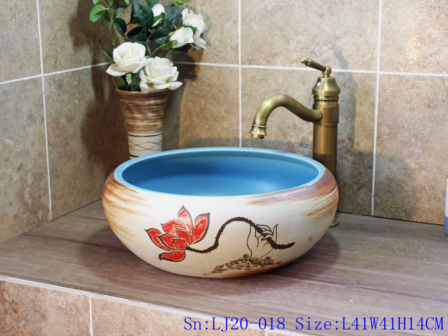 LJ20-018 Hand-painted lotus skyblue round table basin