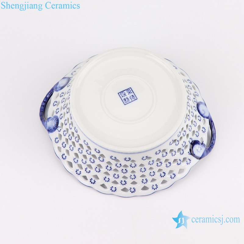 RYFC28-L-M-S blue and white ceramic porcelain pierced fruit plate