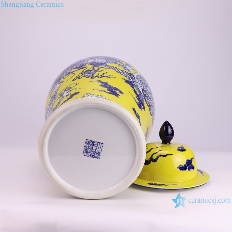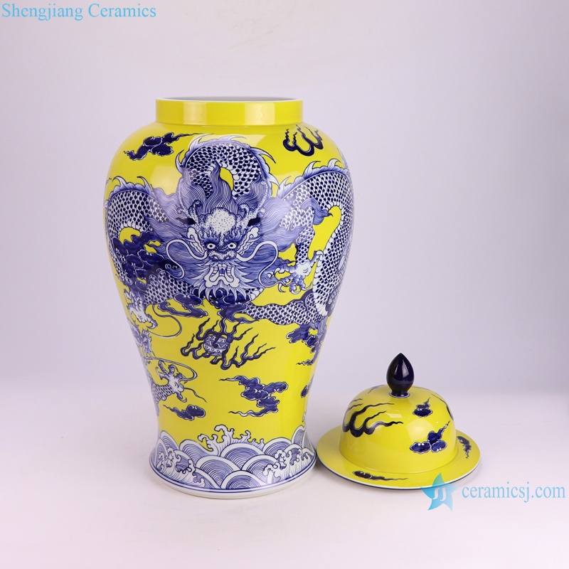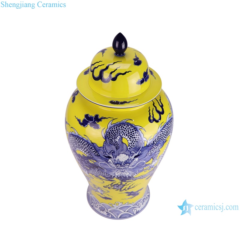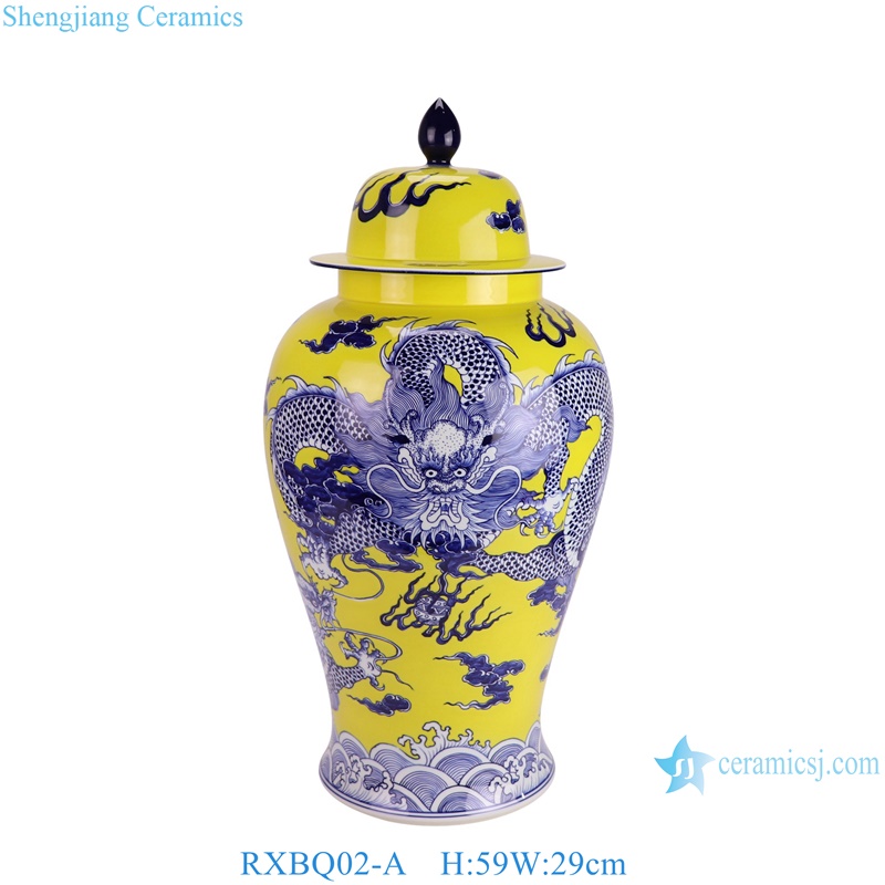 RXBQ02-A High quality hand painted yellow ground dragon pattern ceramic temple jar for home decoration