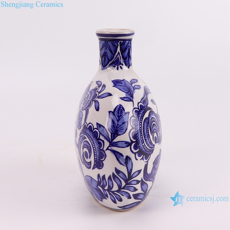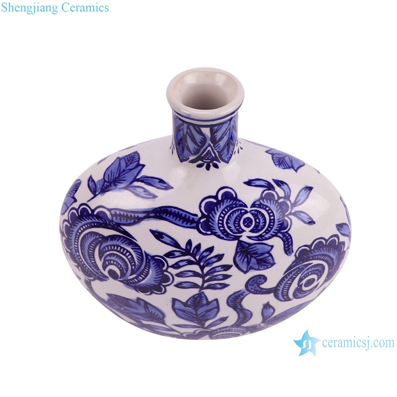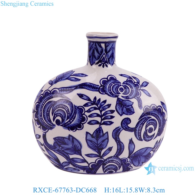 RXCE-67763-DC668 cheap price blue and white flower pattern ceramic moon flask for home decoration