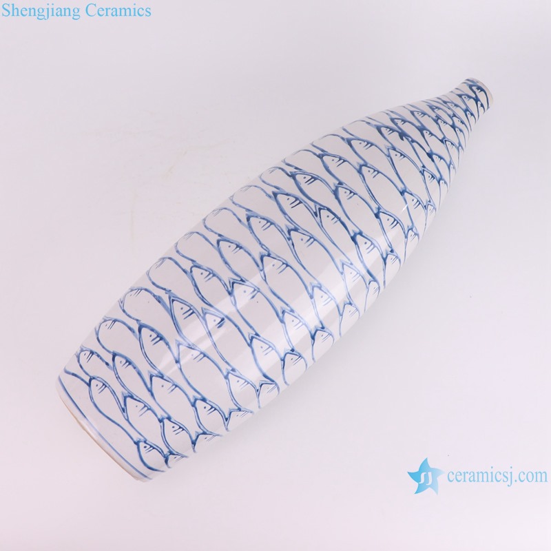 RXCE-BW65310 blue and white fish pattern small mouth ceramic vase for home decoration