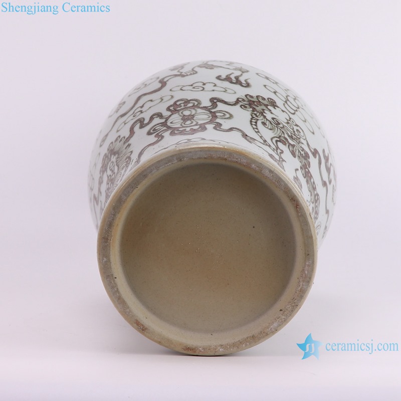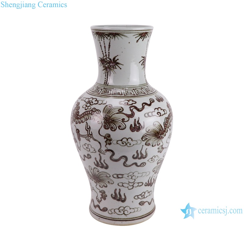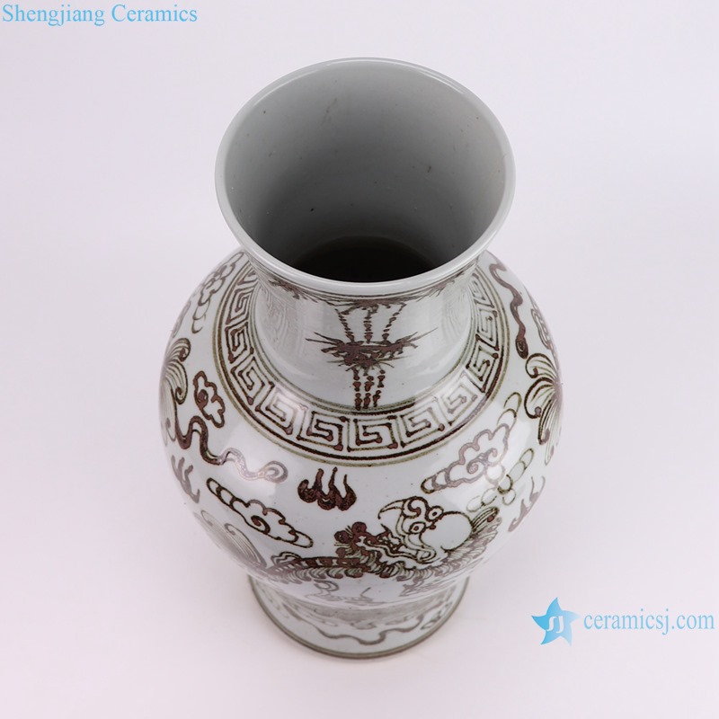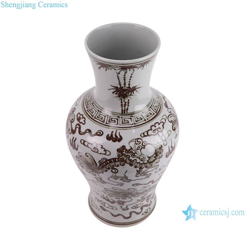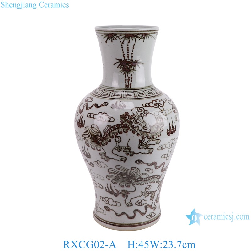 RXCG02-A Antique Hand-painted Underglazed red and White Lion Pattern Fish Tail Shape Home Decoration