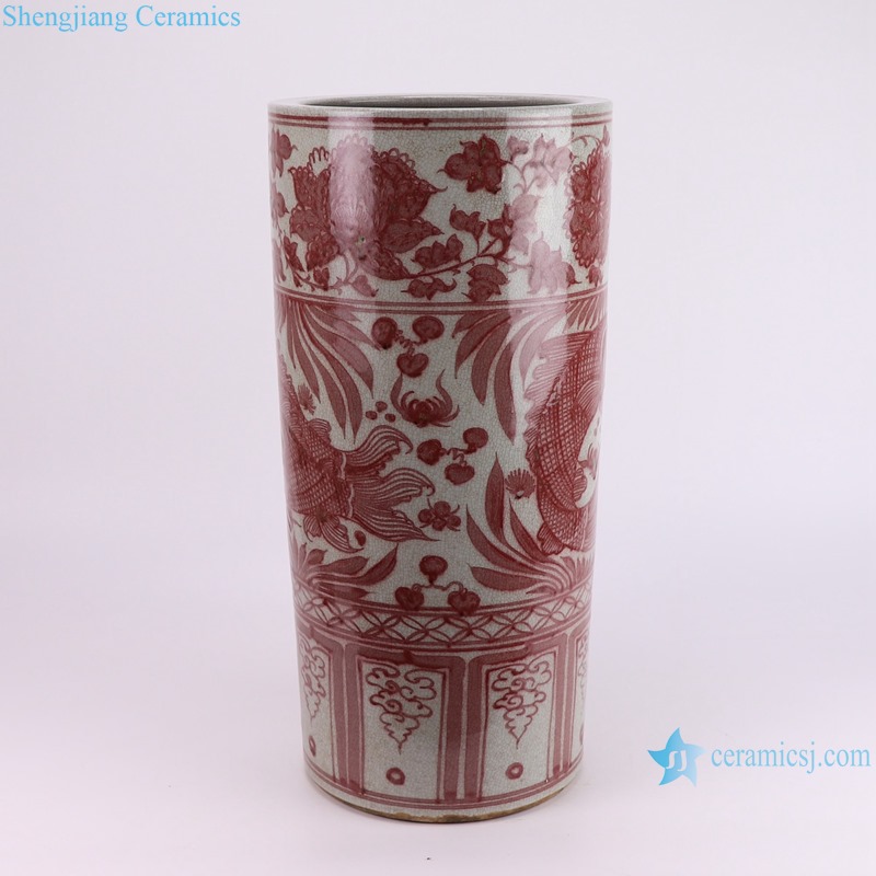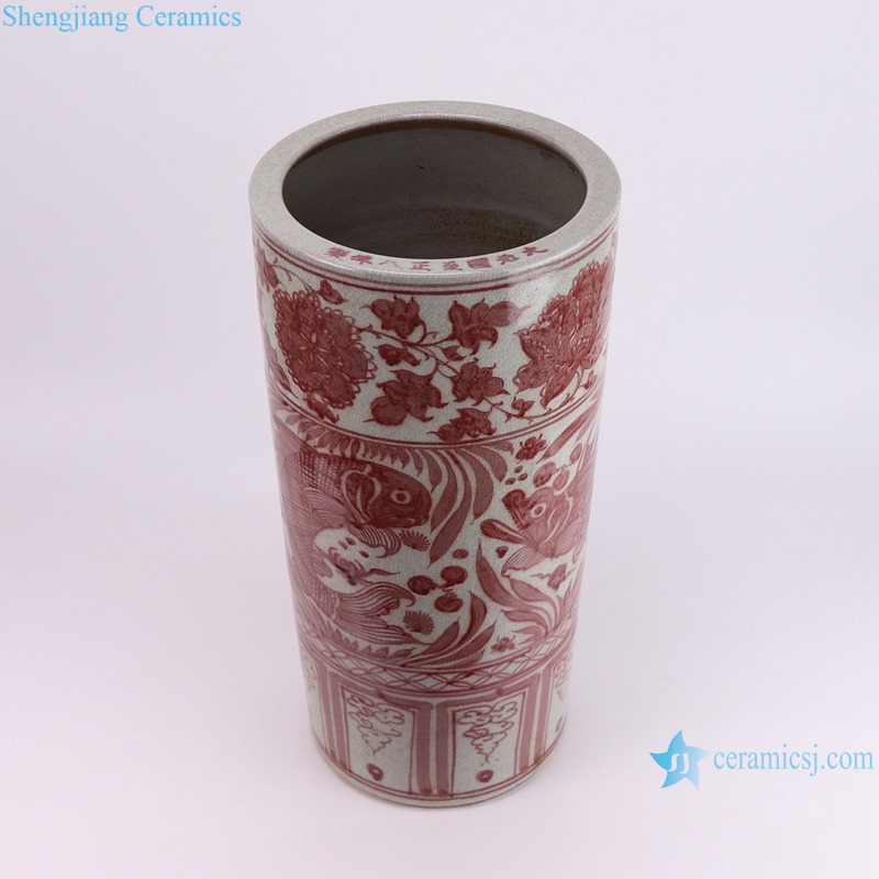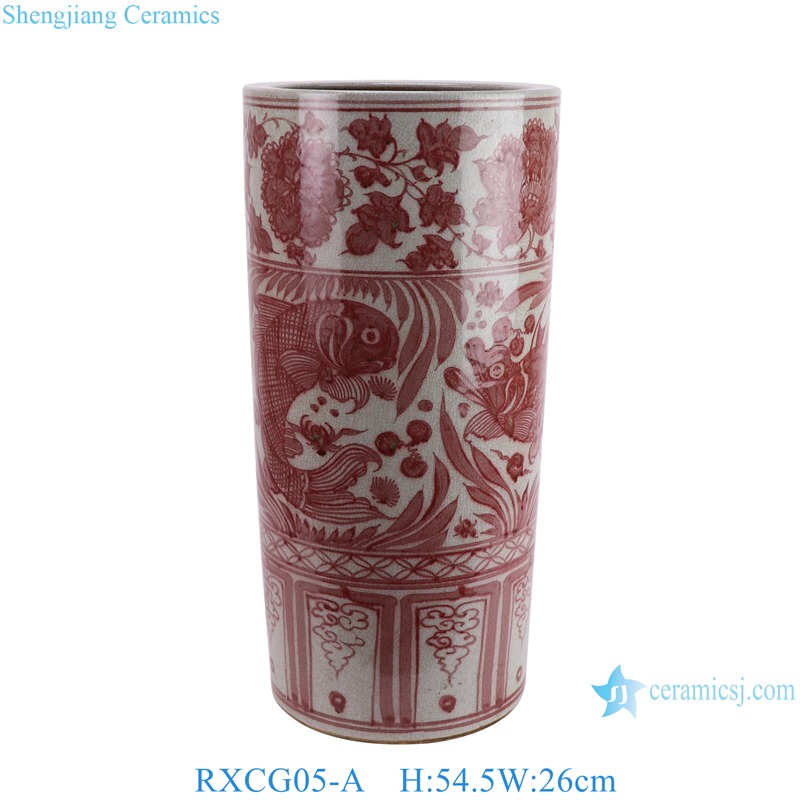 RXCG05-A Hand-painted Fish and Alga Pattern Underglazed red Ceramic floor flower Pot Umbrella stand