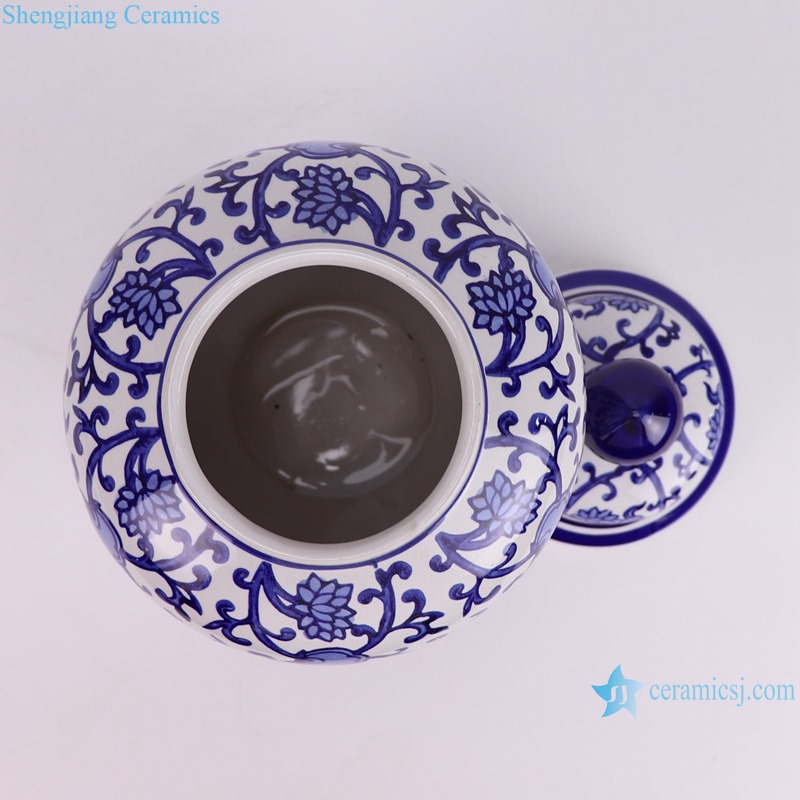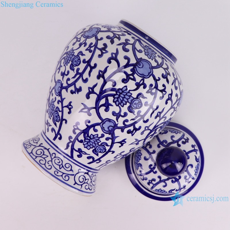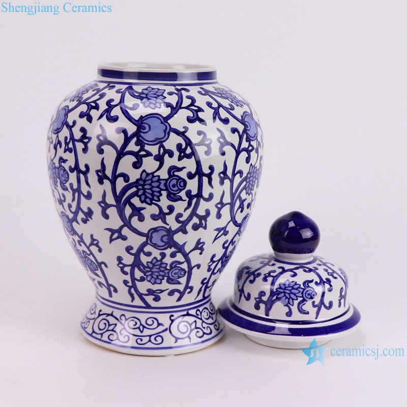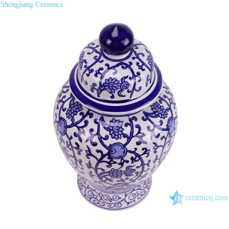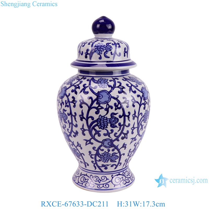 RXCE-67633-DC211 Blue and White Twisted Branch Pattern Porcelain Temple Jar for home decoration