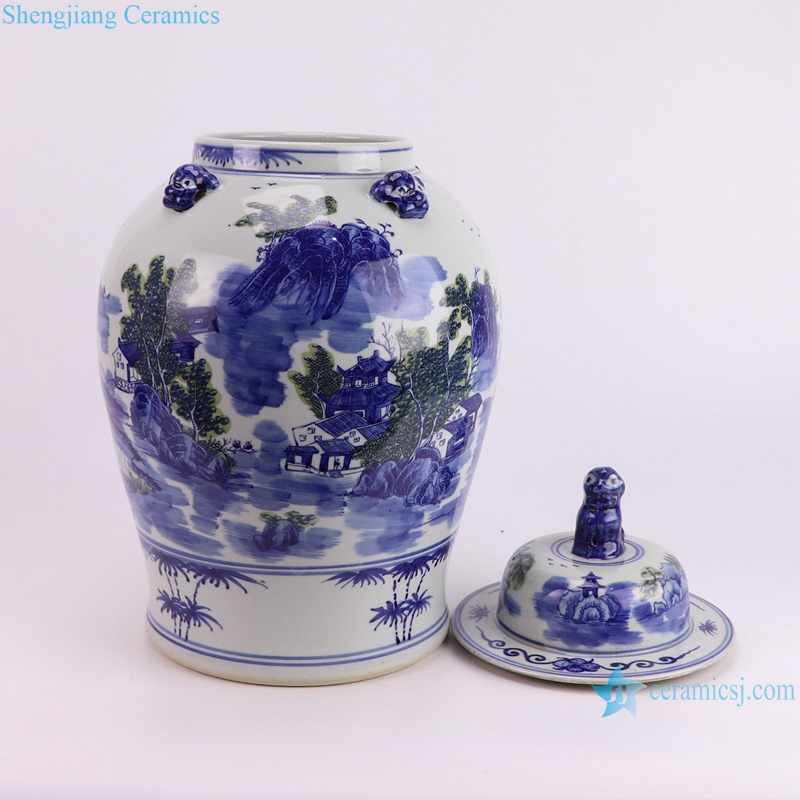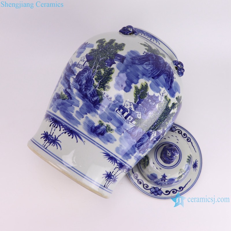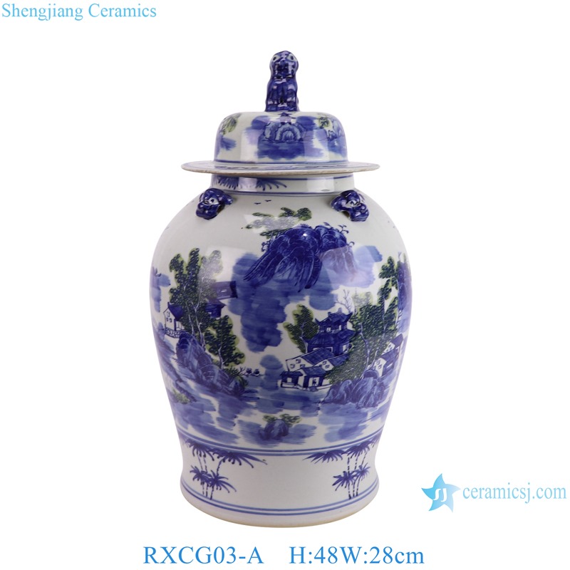 RXCG03-A Hand-Painted Blue and White Landscape Pattern 19inch Porcelain Temple Jar for home decoration