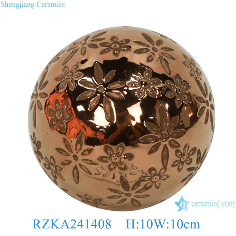 RZKA2414 Luxury Metallic Decorative Porcelain Balls Gold 3″ 4″ Diameter Floating Ceramic Orbs Christmas Ornaments Ceramic Ball