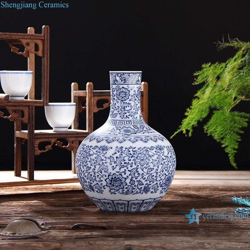 RXCP07-A(Medium and Small) Cheap Blue and White Floral Pattern Globular Shape Porcelain Vase