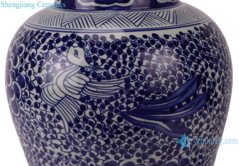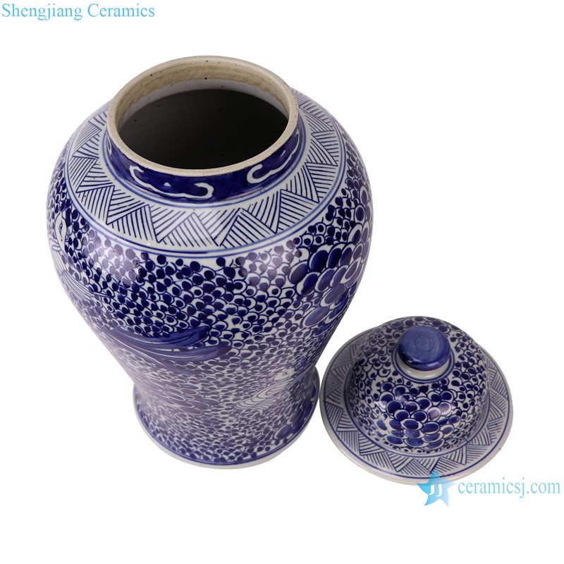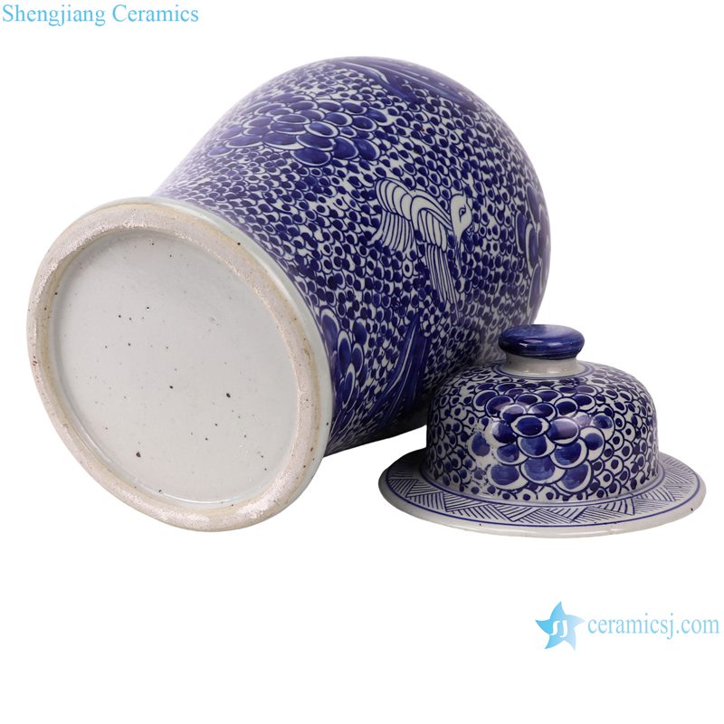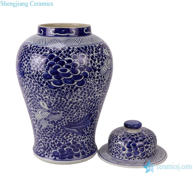 RZKT24-A-S 15inch Cheap Blue and White Pheonix and Peony Pattern Porcelain Temple Jar