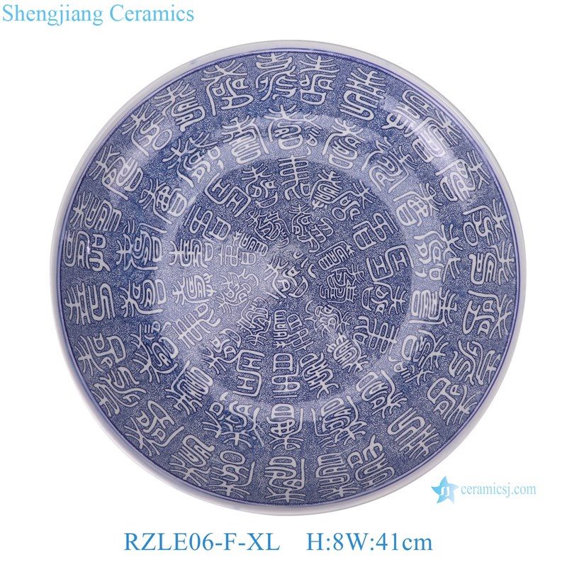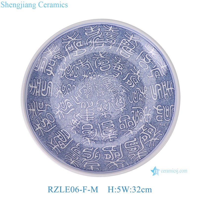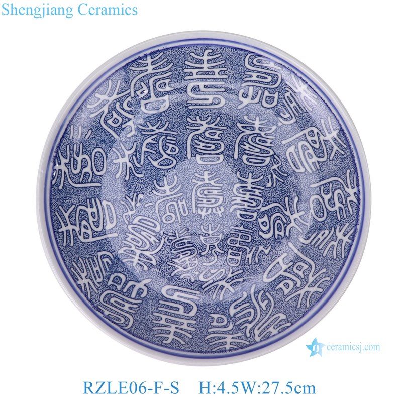 RZLE06-F-S-M-L-XL Jingdezhen high-quality blue and white porcelain four-piece ceramic plate set with longevity design