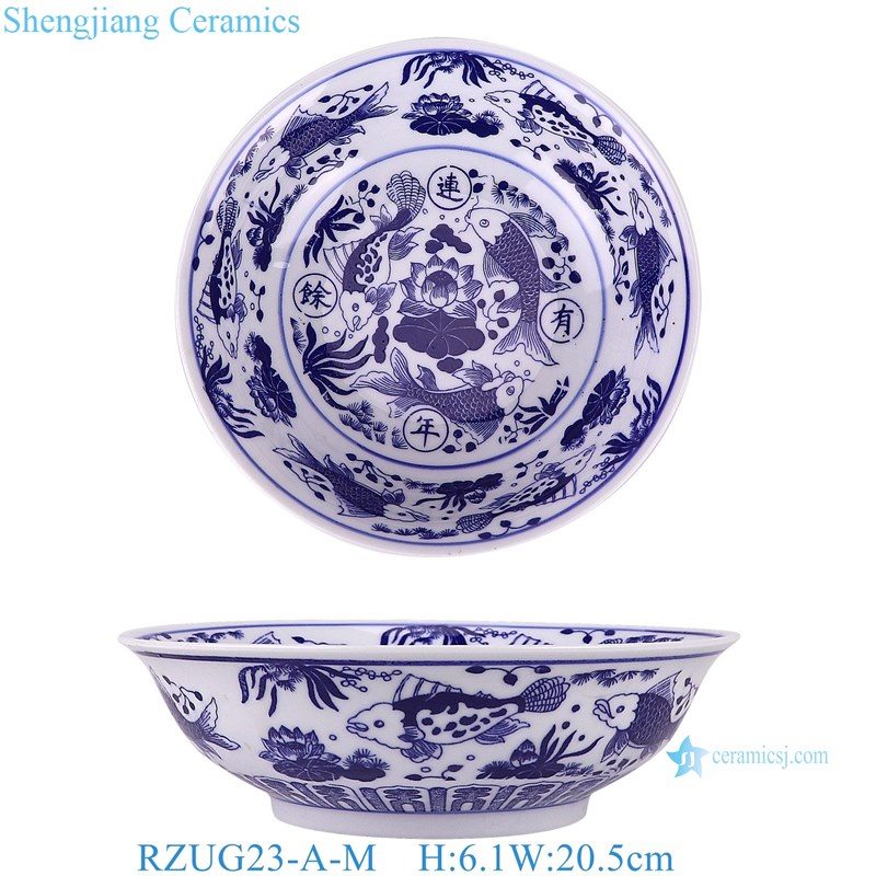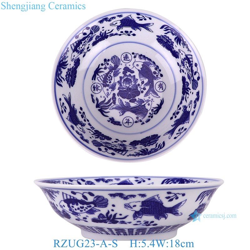 RZUG23-A-M-S Jingdezhen high quality blue and white porcelain fish and algae pattern home tableware ceramic bowl