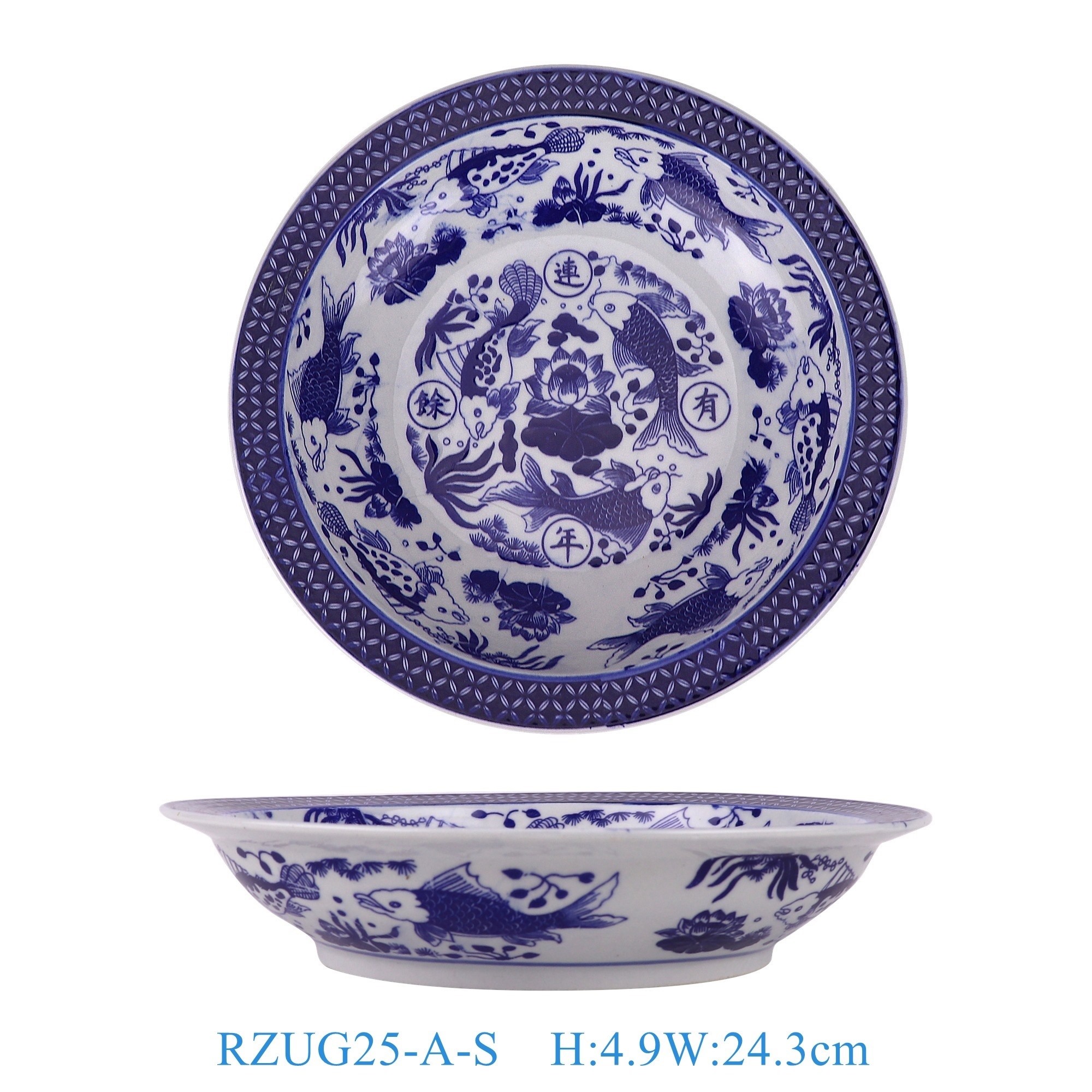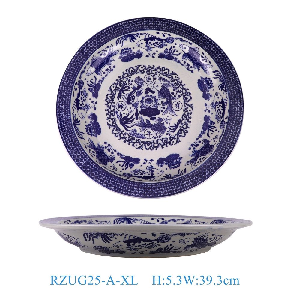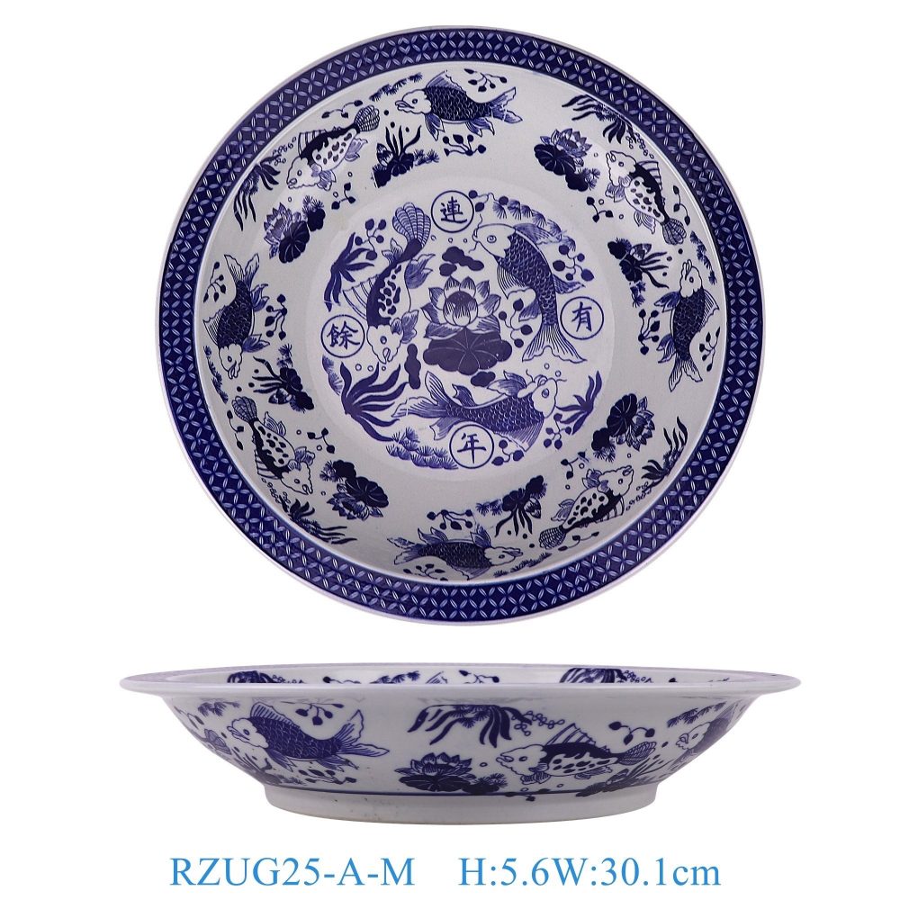 RZUG25-A-S-M-L-XL Jingdezhen high quality blue and white porcelain fish and algae pattern home tableware ceramic dinner plate