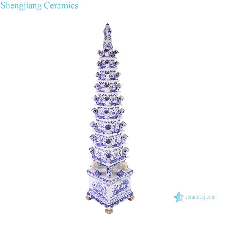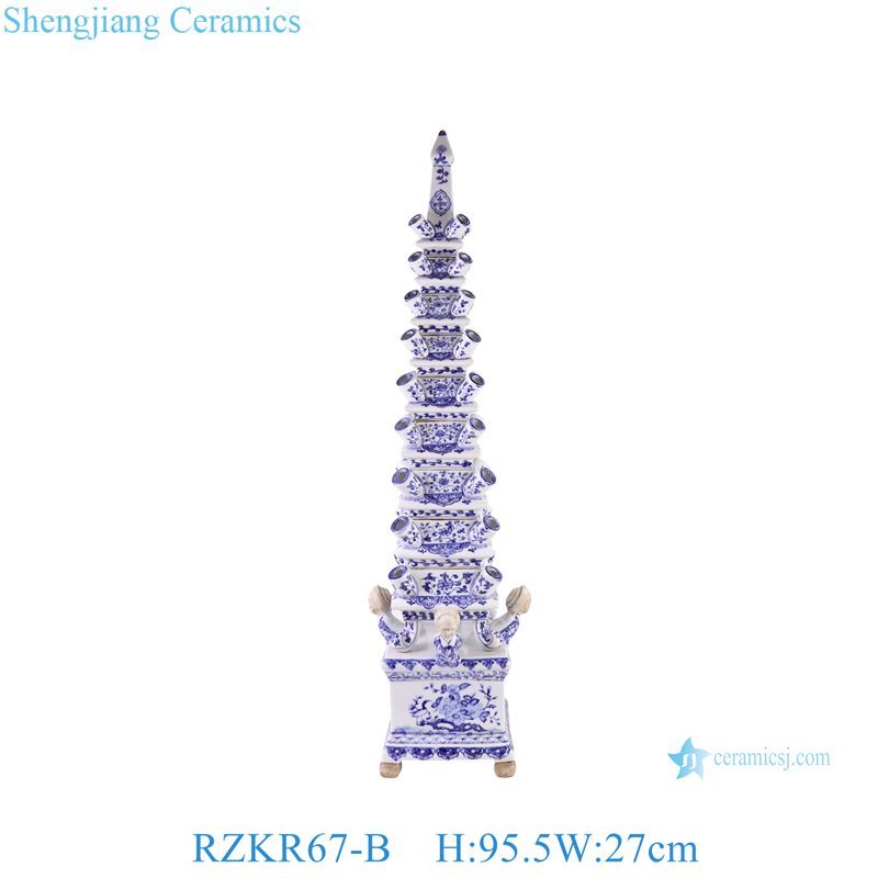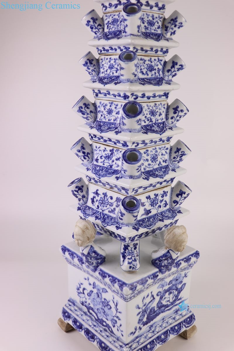 RZKR67-B Blue and White Porcelain Tulipiere Vase Handmade Unique Style Tall Tulip Pagoda Vase