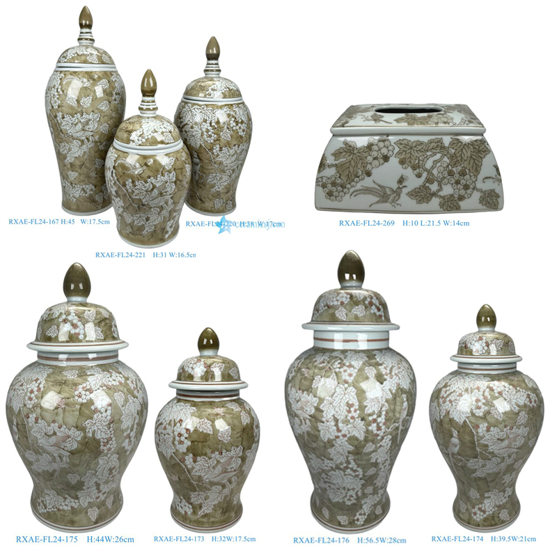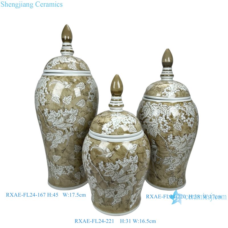 RXAE series Beautiful Popular Cheap Low Price Grape Pattern Ceramic Temple Jar