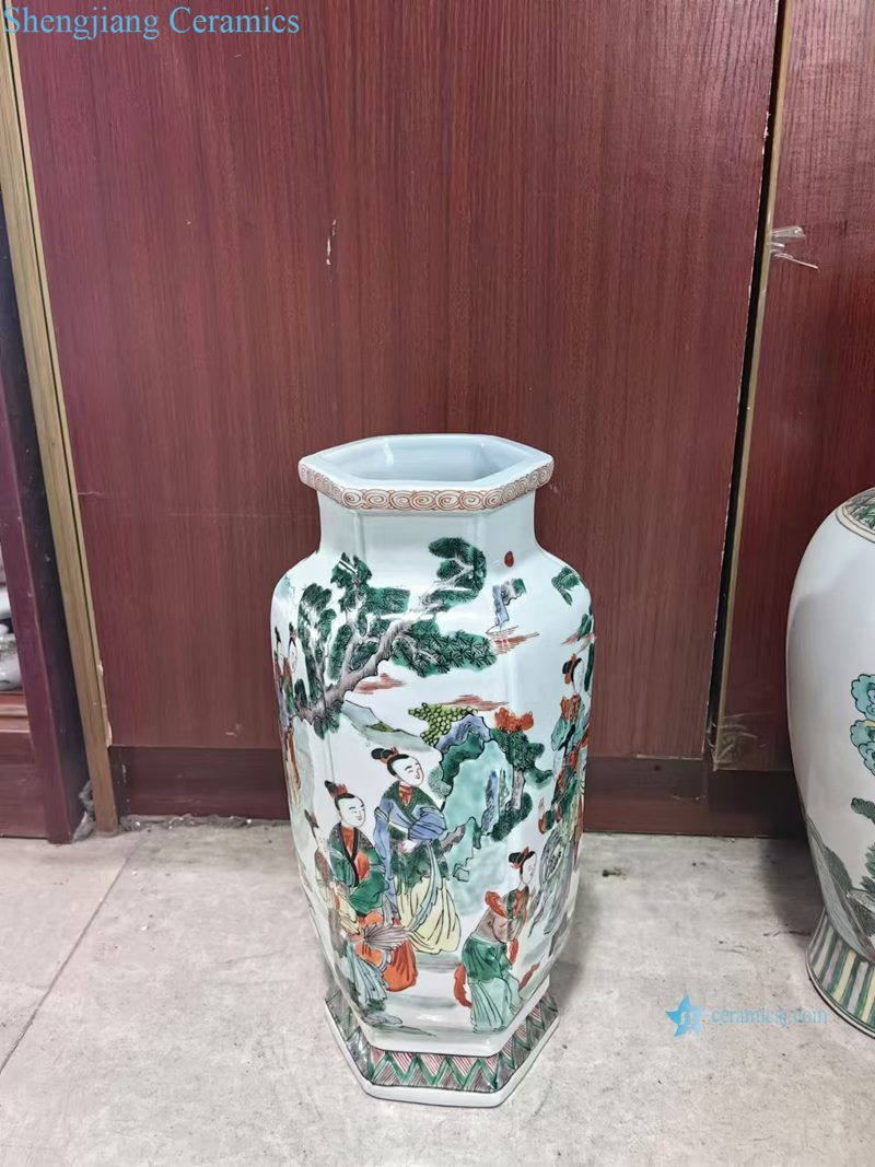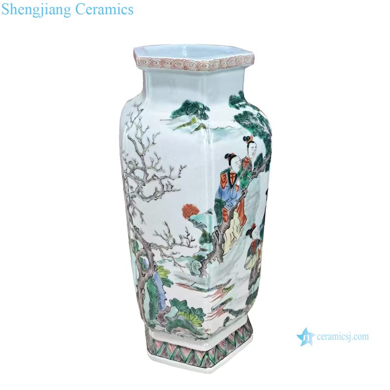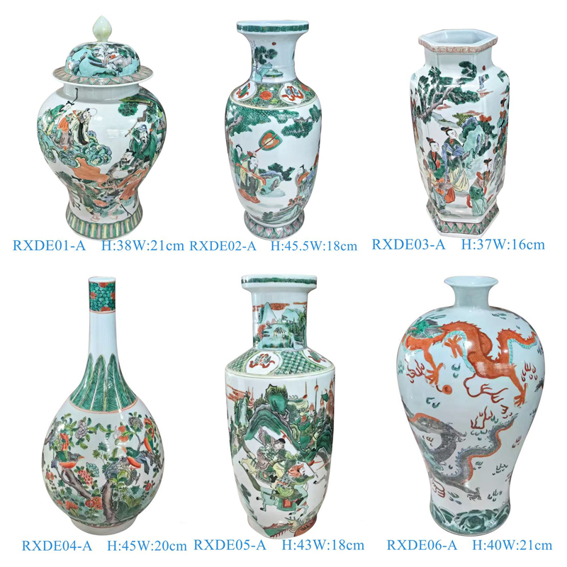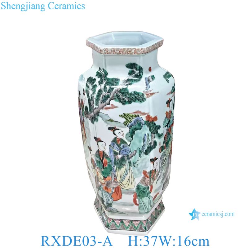RXDE02-A Antique Handmade Doucai Character story Pattern Fish Tail Shape Porcelain Vase
