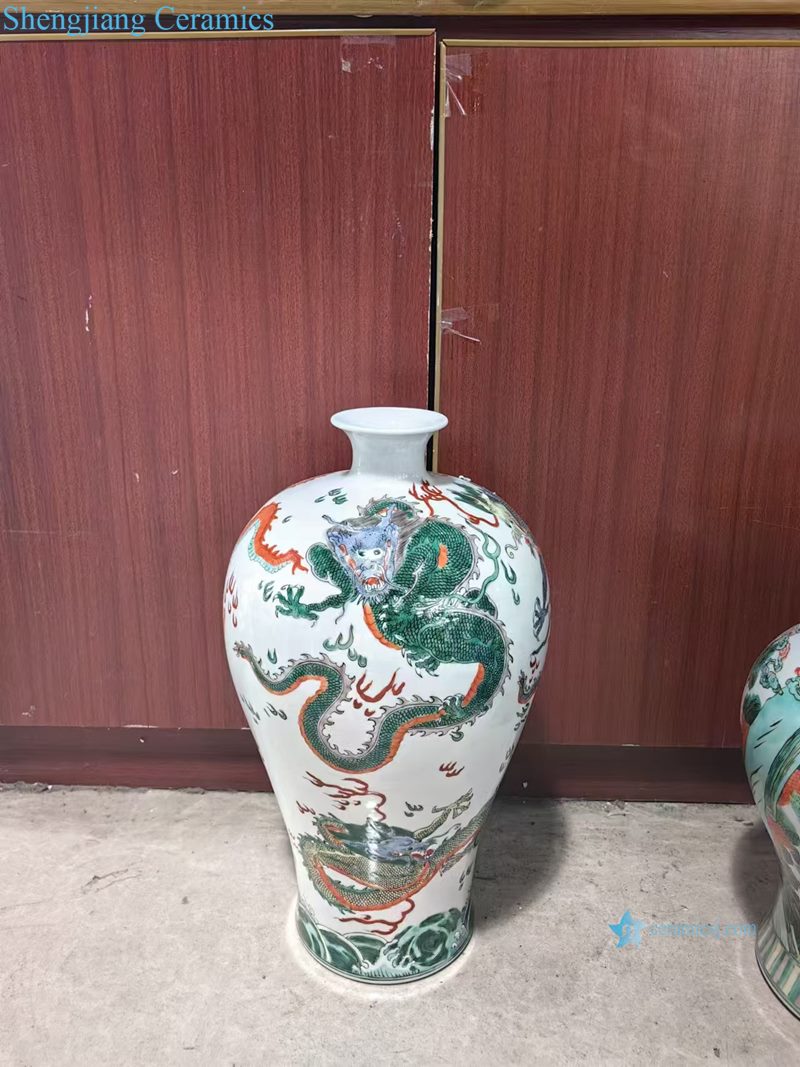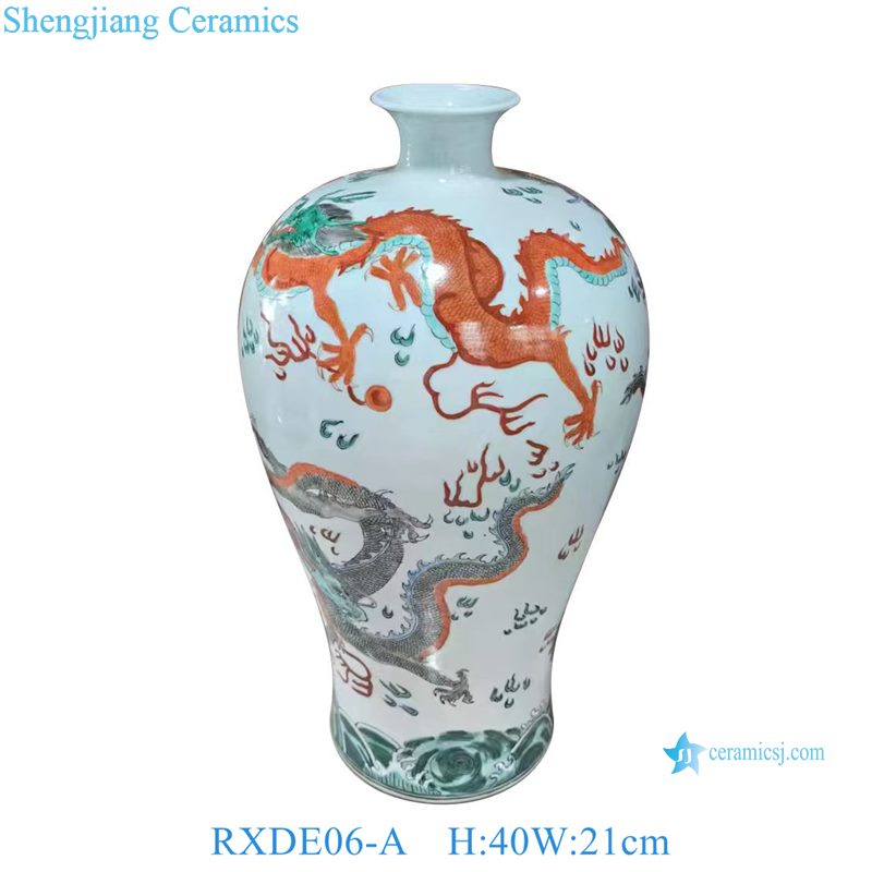 RXDE06-A Ancient Color Handmade Dragon Pattern Porcelain Meiping Vase Home Decor