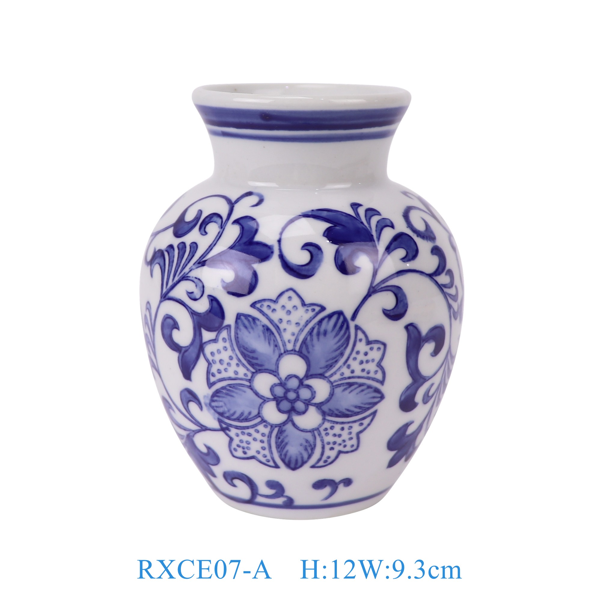 RXCE07-A Jingdezhen porcelain blue and white floral leaf pattern home decoration ornaments ceramic mini cute vase