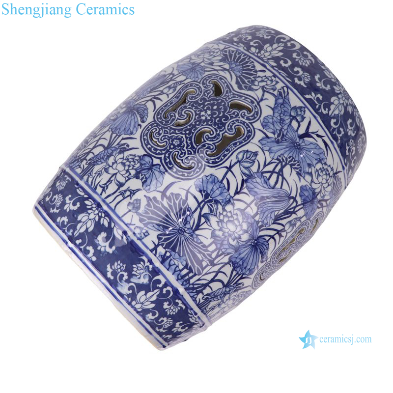 RZSi39-i Blue and White Plants Lotus Pattern Round Ceramic Stool Home Decoration