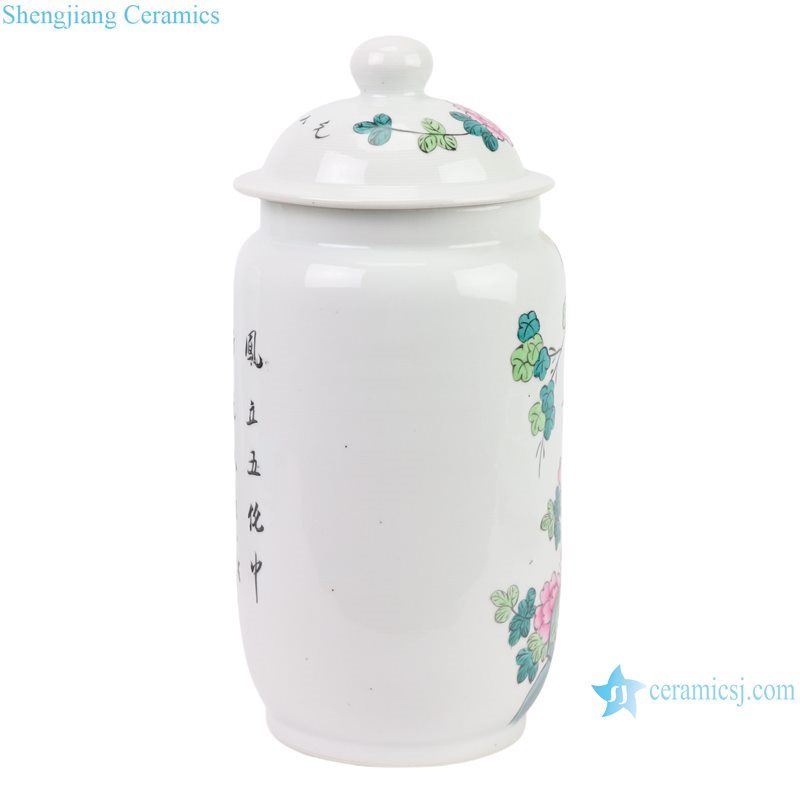 RZIH31-A-B Tongzhi Period Chinoiserie Vintage Hand Painted Flower and Bird Pattern Cylinder Porcelain Jar |