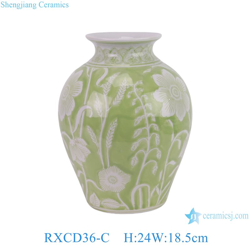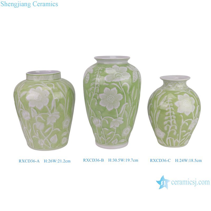RXCD36-A-B-C Wholesale Green and White Porcelain Home Decorative Ornament Minimalist Style Flower Pattern Ceramic Vase Flower Pot |