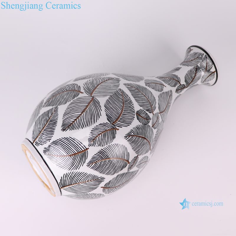 RXCE-66288-DC759 Jingdezhen Porcelain Black Leaf Pattern Ceramic Jade Pot Spring Vase