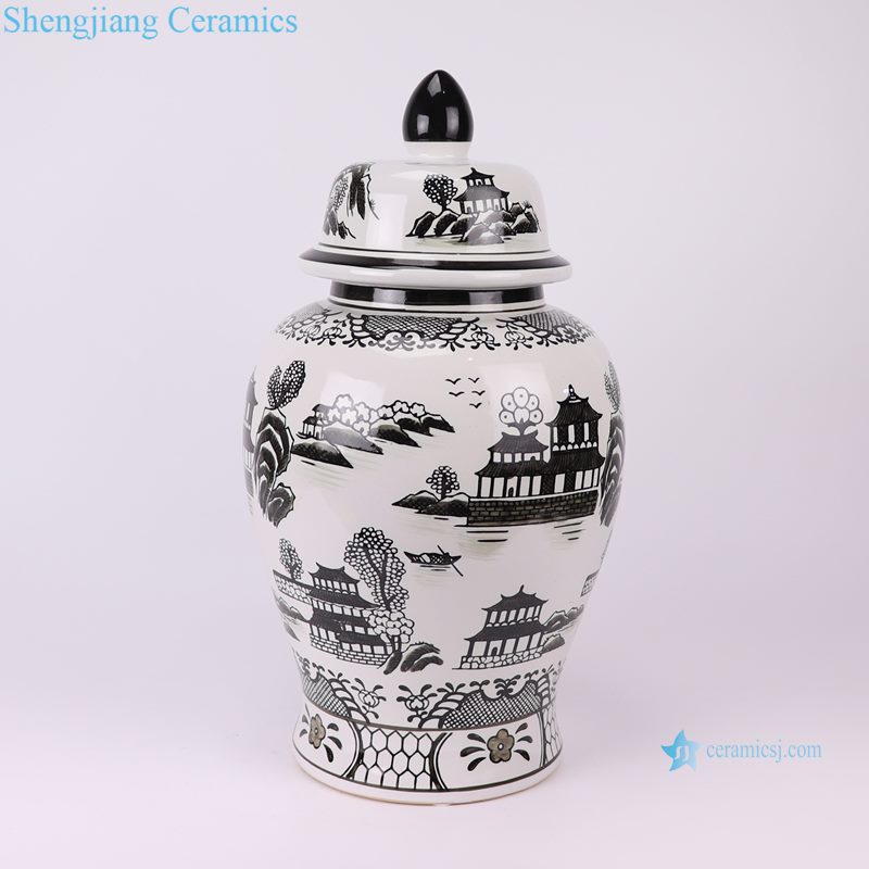 RXCE-6711-DC620 Jingdezhen Porcelain Black Sycamore Landscape Pattern Ceramic General Storage Jar