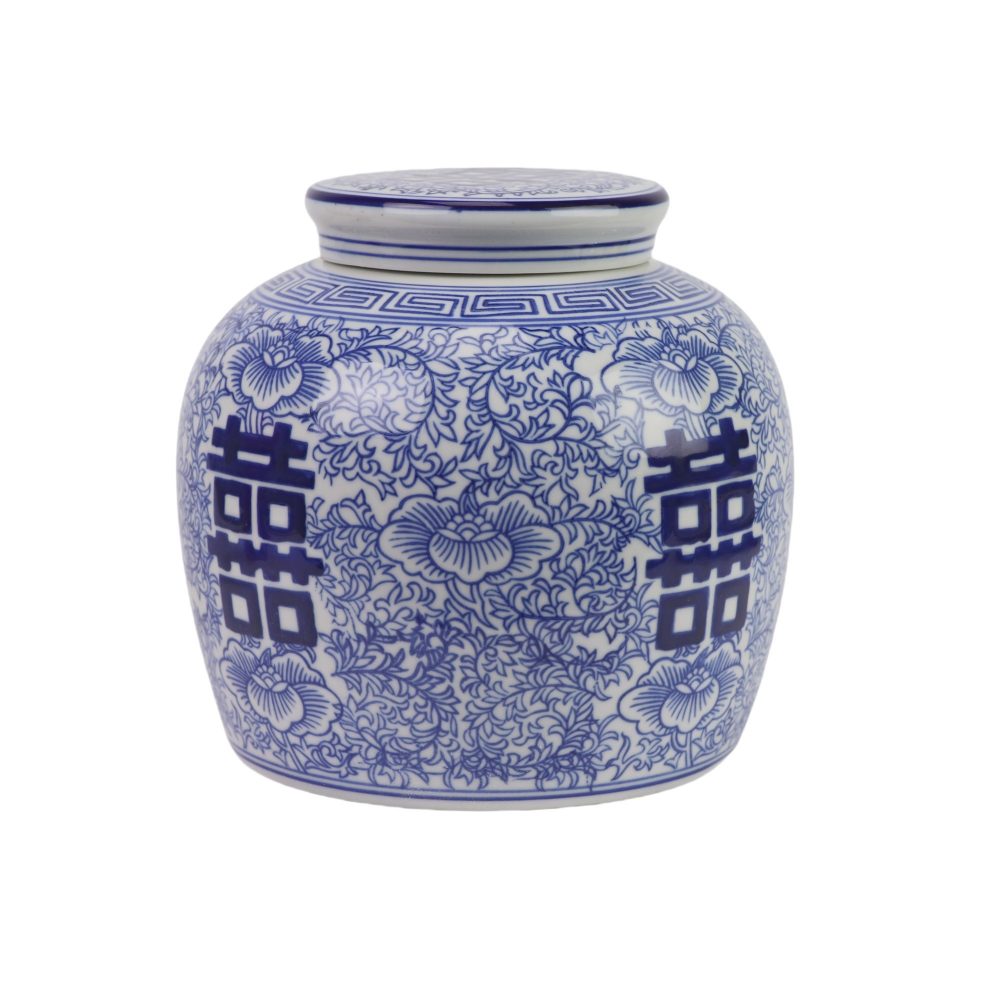 RXCF11-AB Cost-effective Blue and White Red and White Glazed Ceramic Home Decor Happy Storage Jar