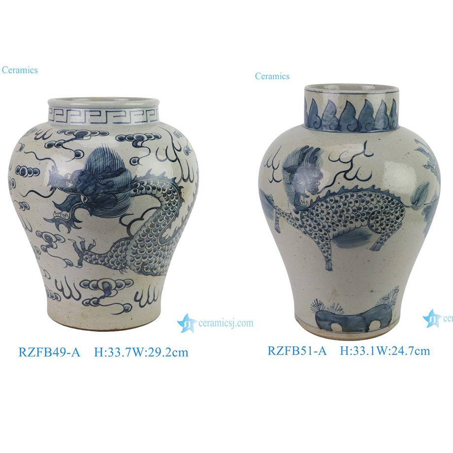 RZFB49-A/RZFB51-A Antique Clay Dragon Qilin Pattern Ceramic Pot Jar |