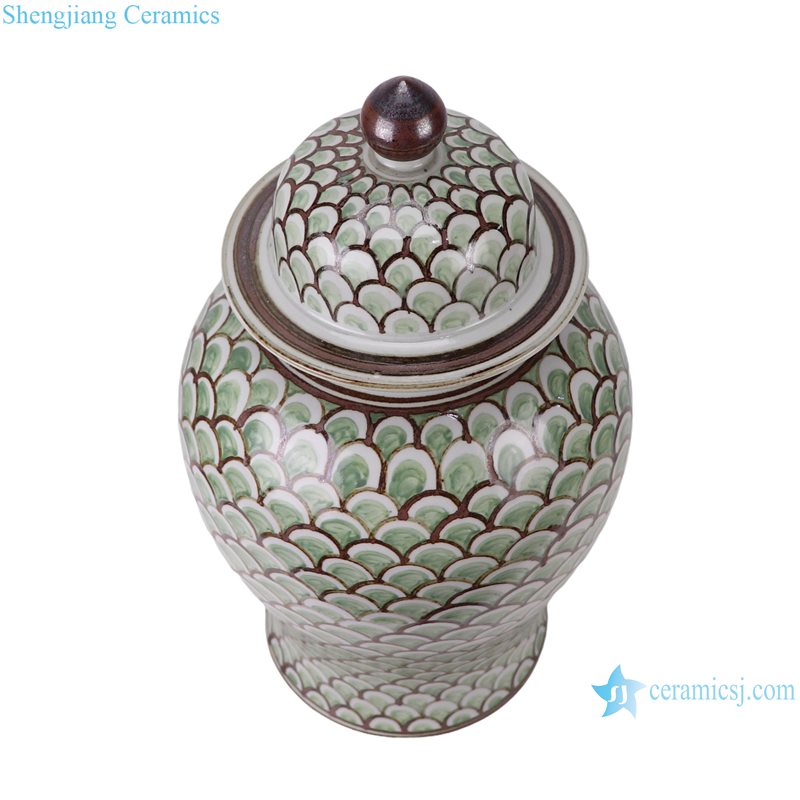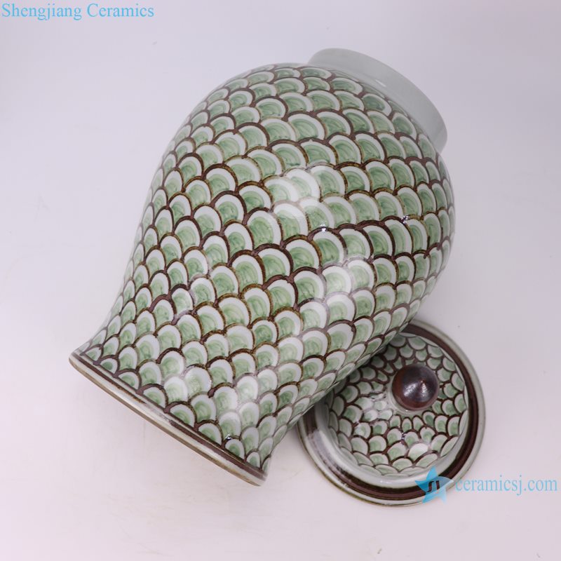 RYKB183/RZSX147 Vintage Chinese Blue Green Glazed Porcelain Ginger Jar Large Fish Scale Ceramic Temple Jar |